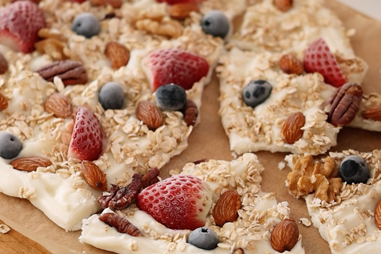 과일과 견과류를 토핑으로 콕콕 얹어 주세요.